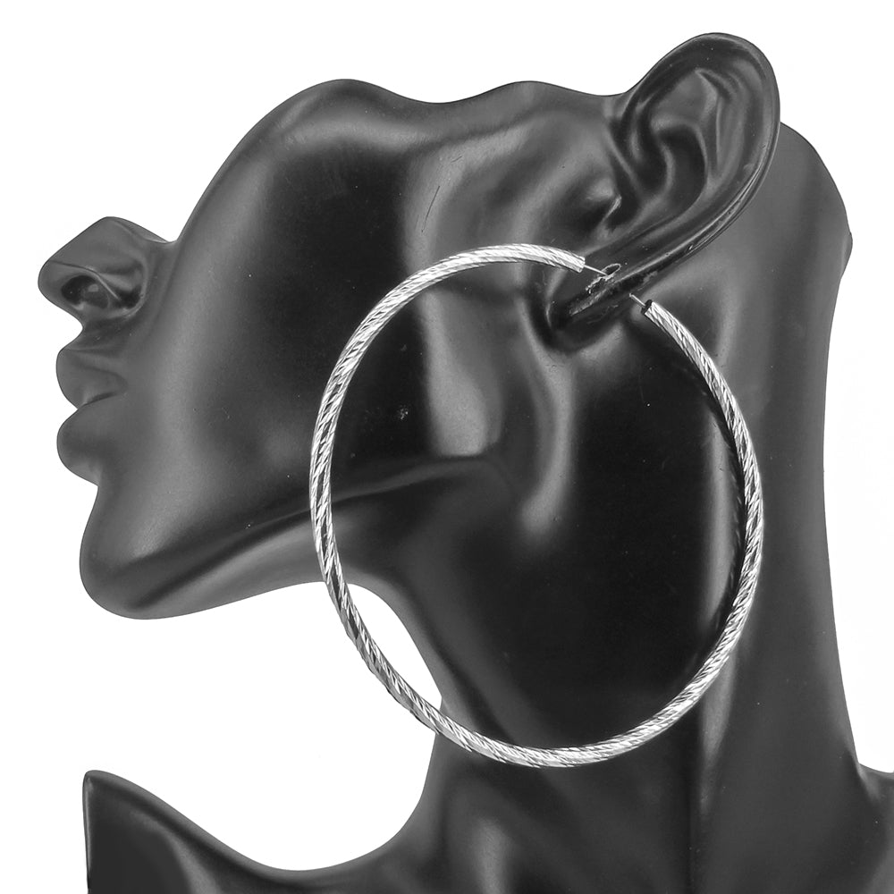 Twist Texture Metal Endless Hoop Earrings (80 mm)