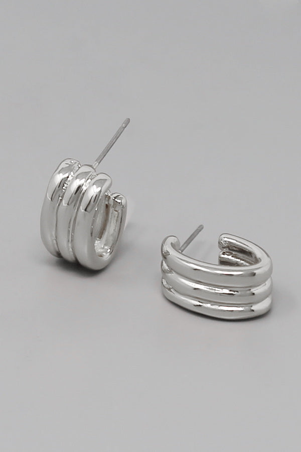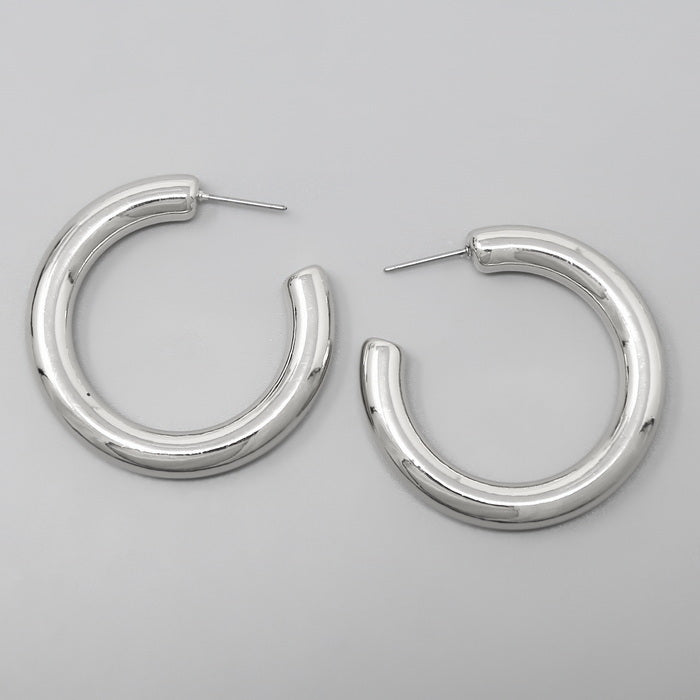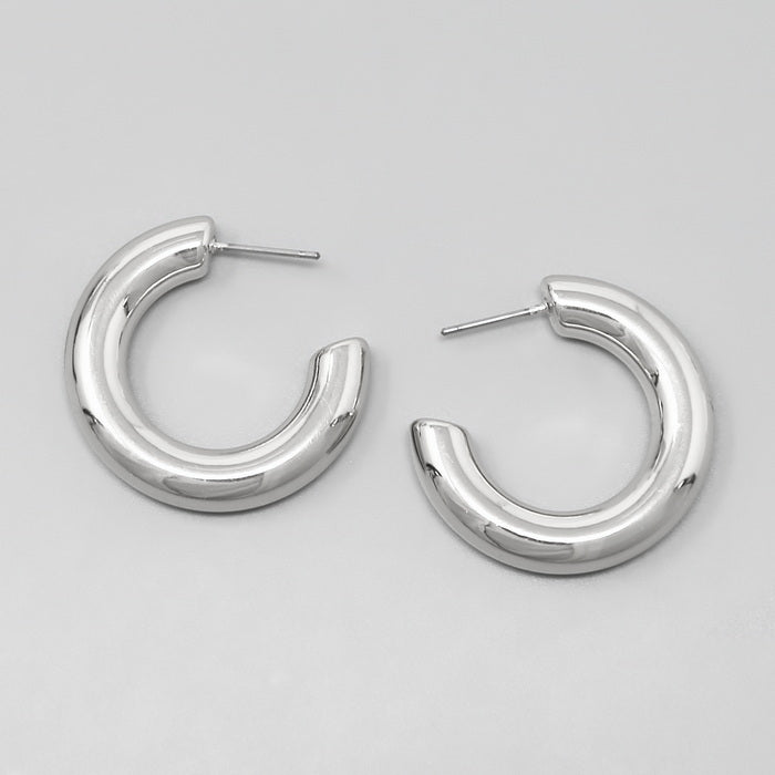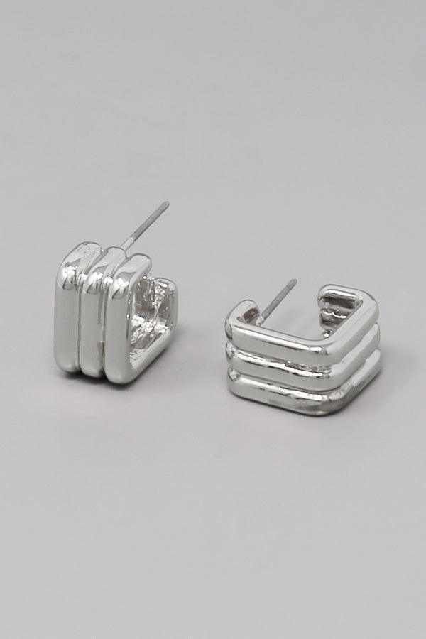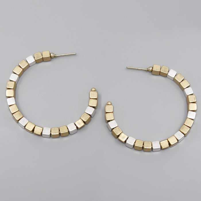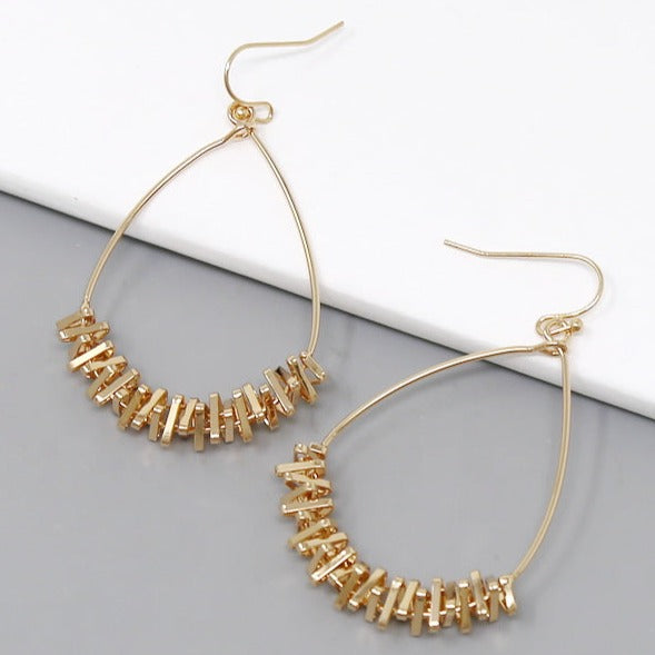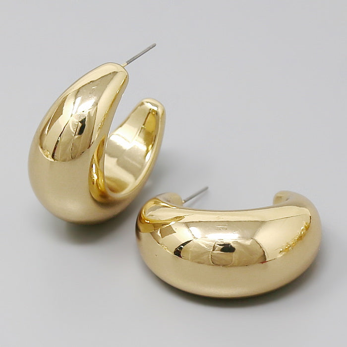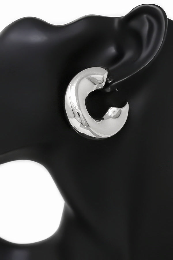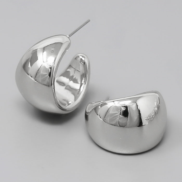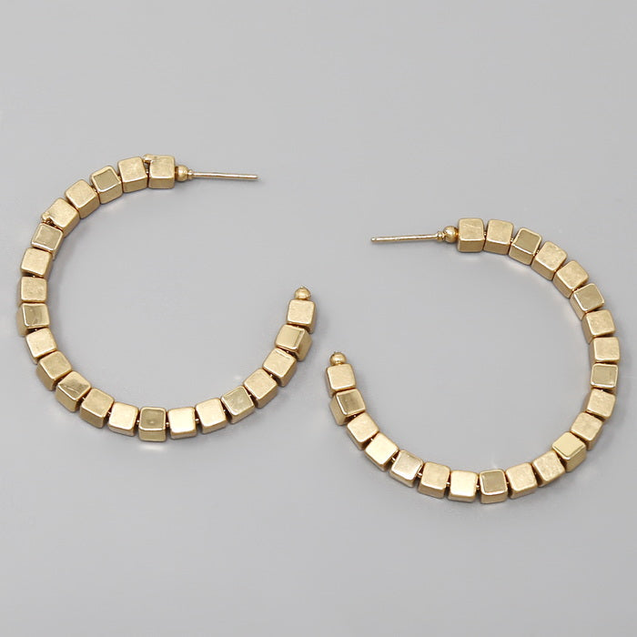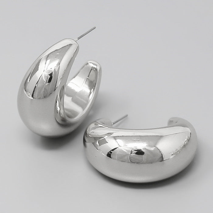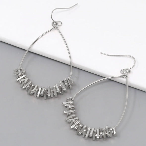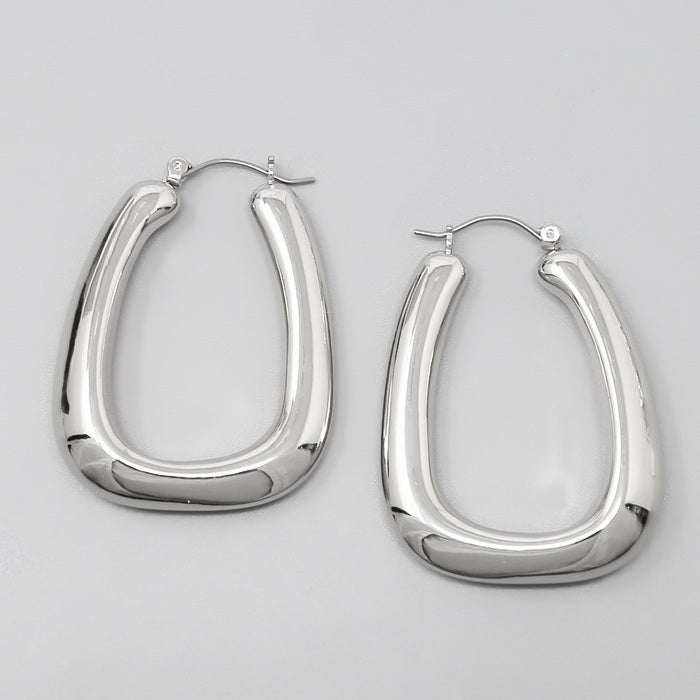 Nail Shape CZ Embellished Metal Hoop Earrings