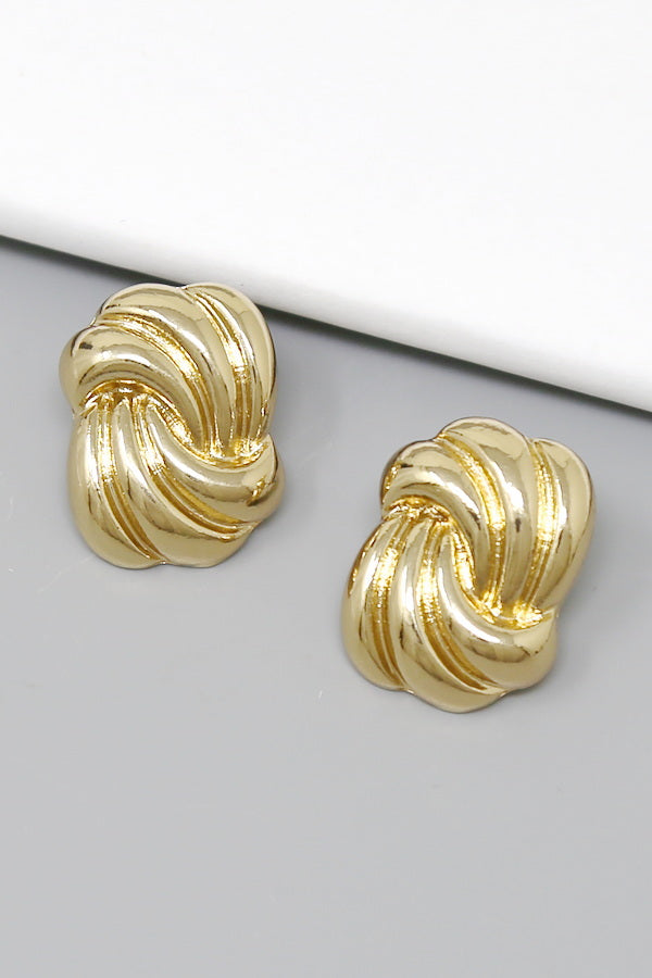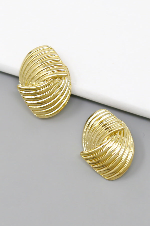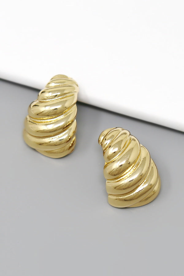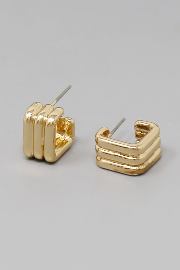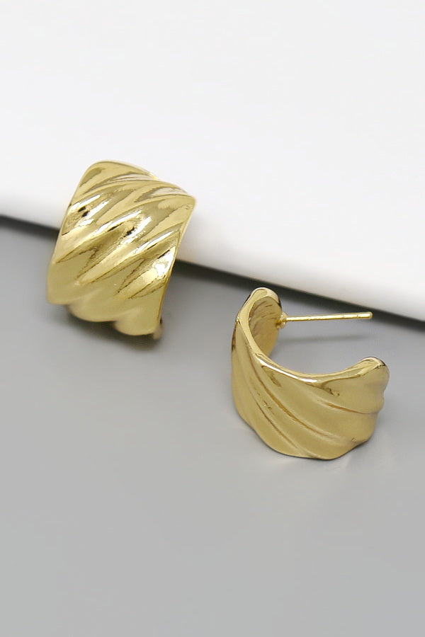 Safety Pin CZ Pave Gold Dipped Stud Earrings