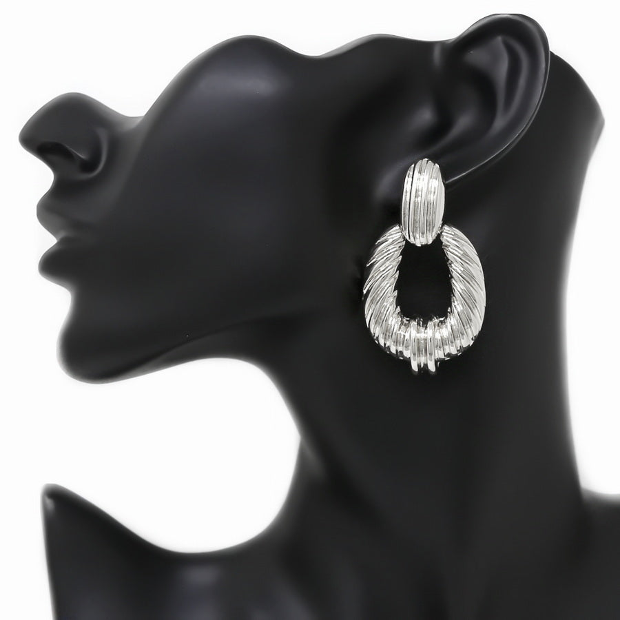 Ribbed Texture Oval Hoop Metal Drop Earrings