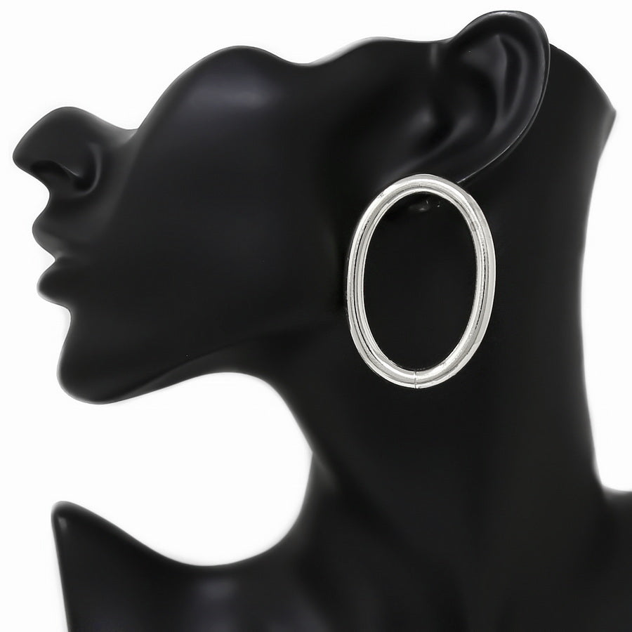Oval Hoop Metal Drop Earrings