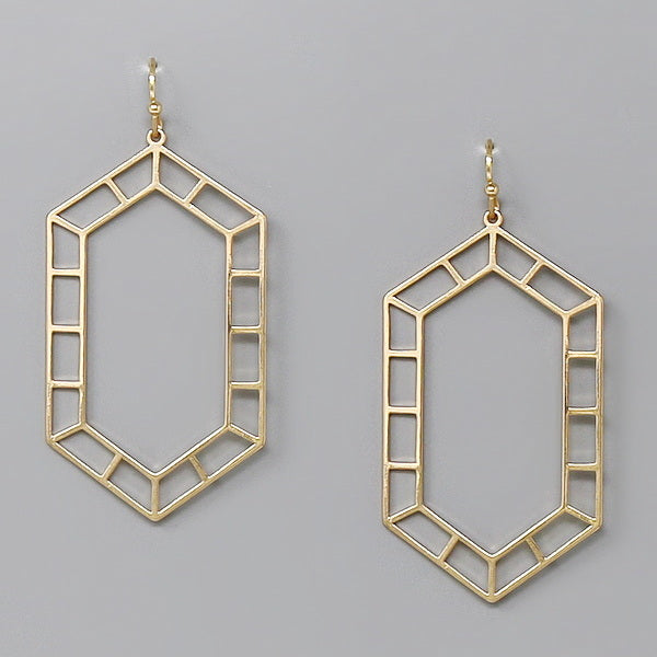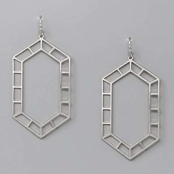 Hexagon Textured Hoop Dangle Earrings