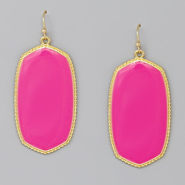 Hexagon Frame Enamel Drop Earrings
