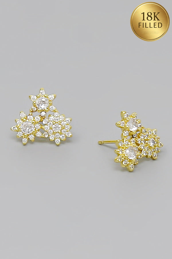 18K Gold Filled Pave Flower Cluster Stud Earrings