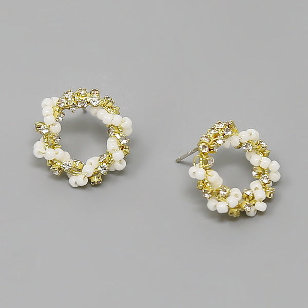 Glass Stone & Seed Bead Wrapped Stud Earrings