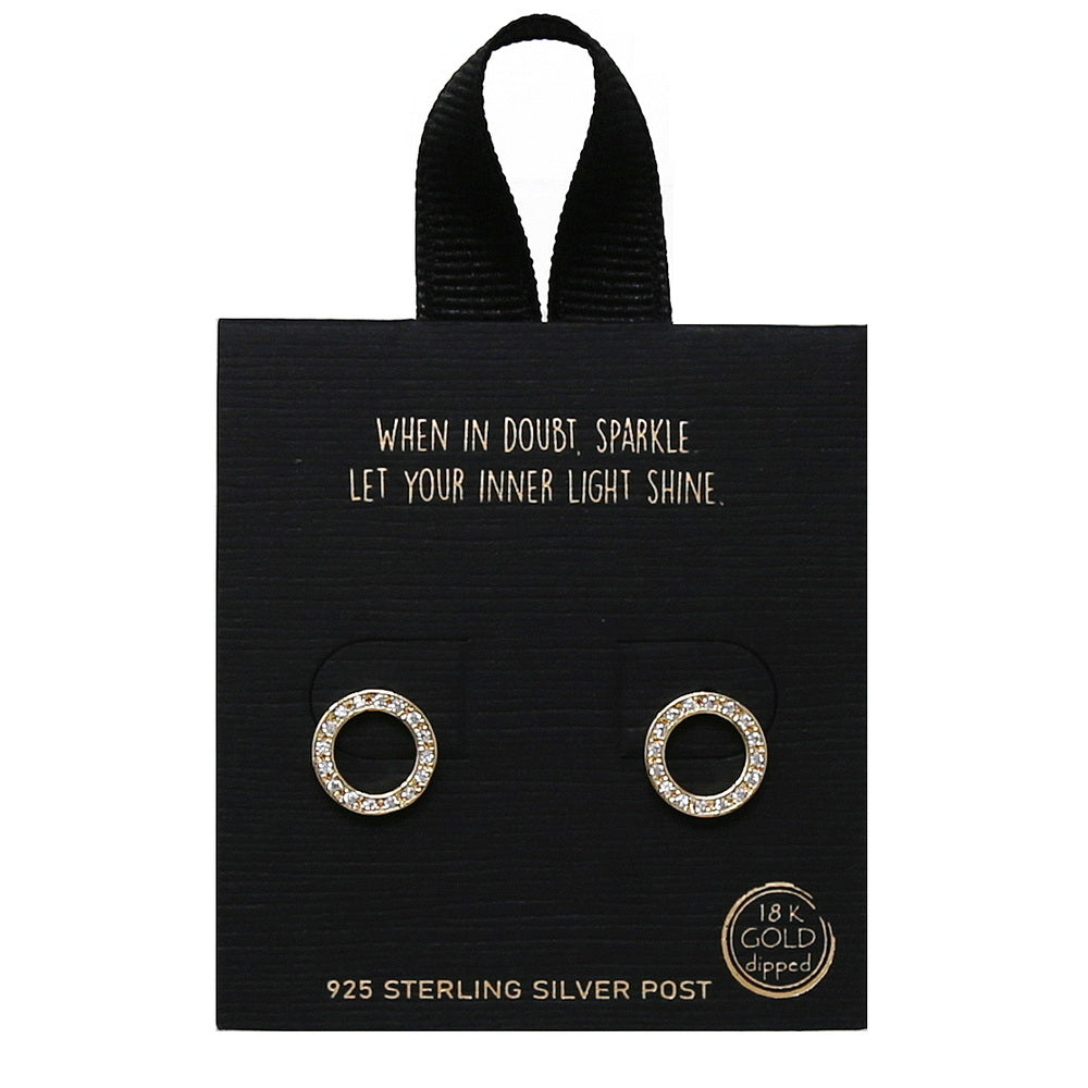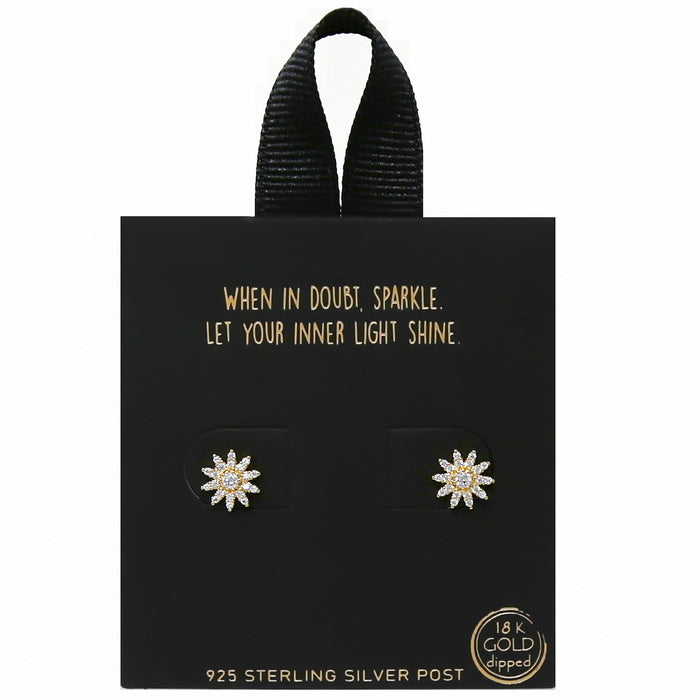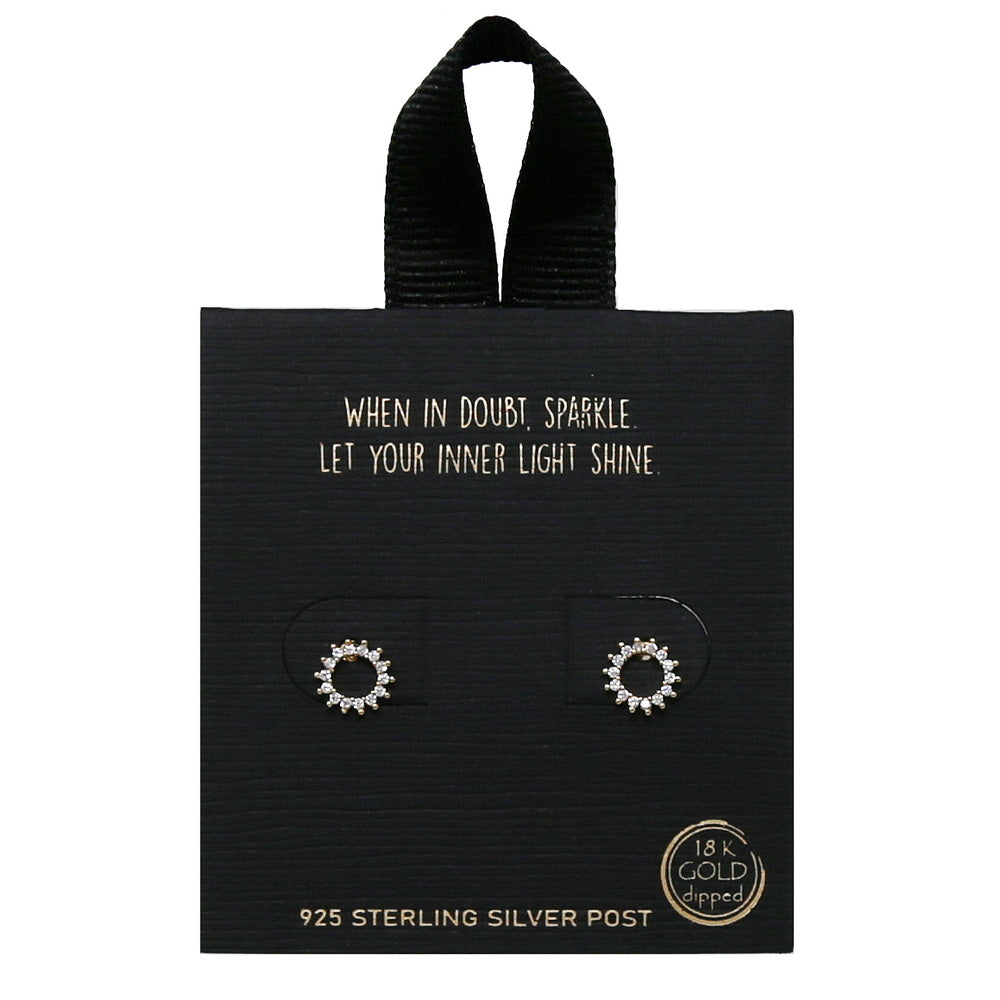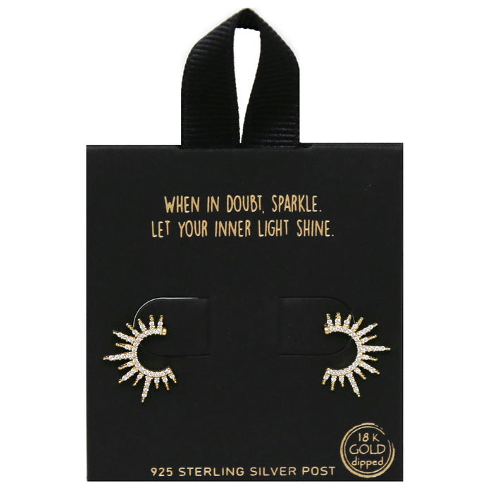 Sun Shape CZ Pave Gold Dipped Stud Earrings