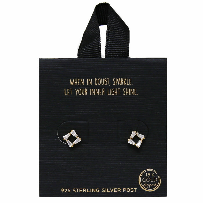 Rhombus CZ Pave Gold Dipped Stud Earrings