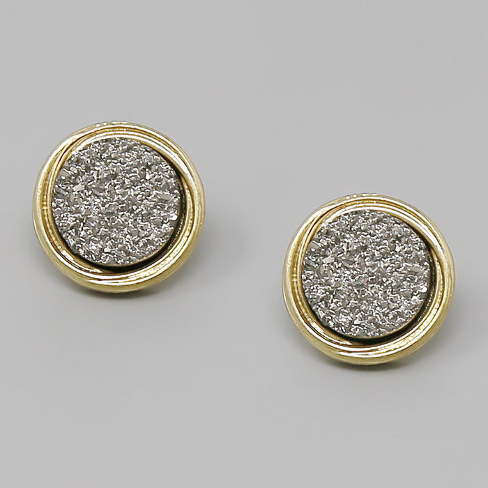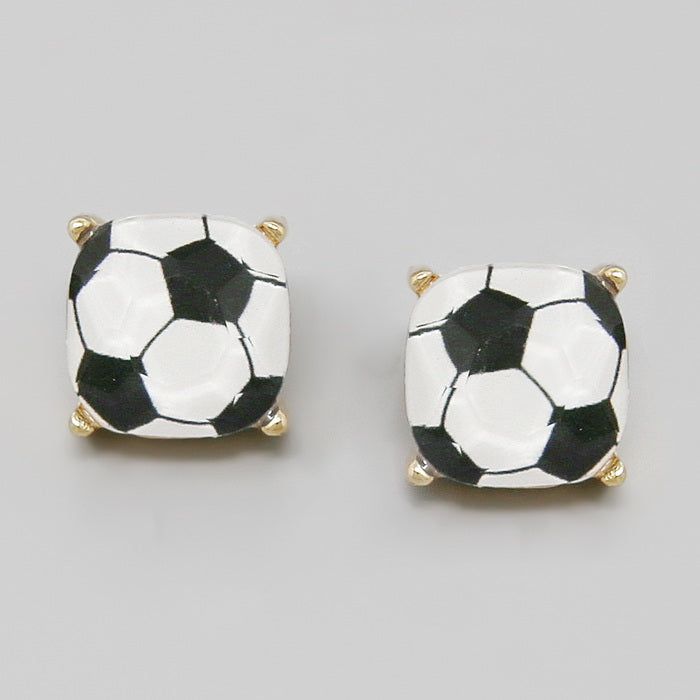 Soccer Ball Faceted Glass Stone Square Shape Stud Earrings