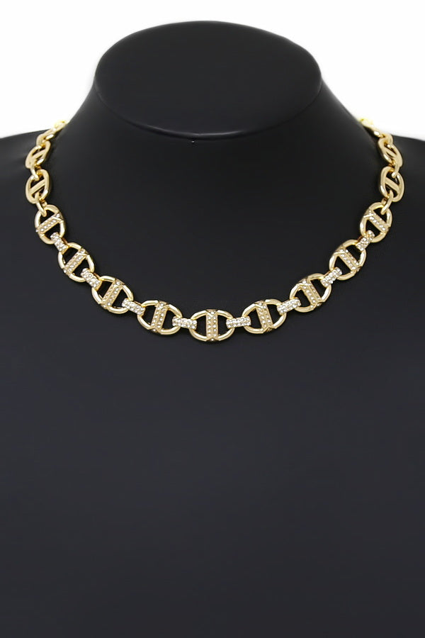 Two Tone Pave Hardware Link Chain Gold Filled Necklace