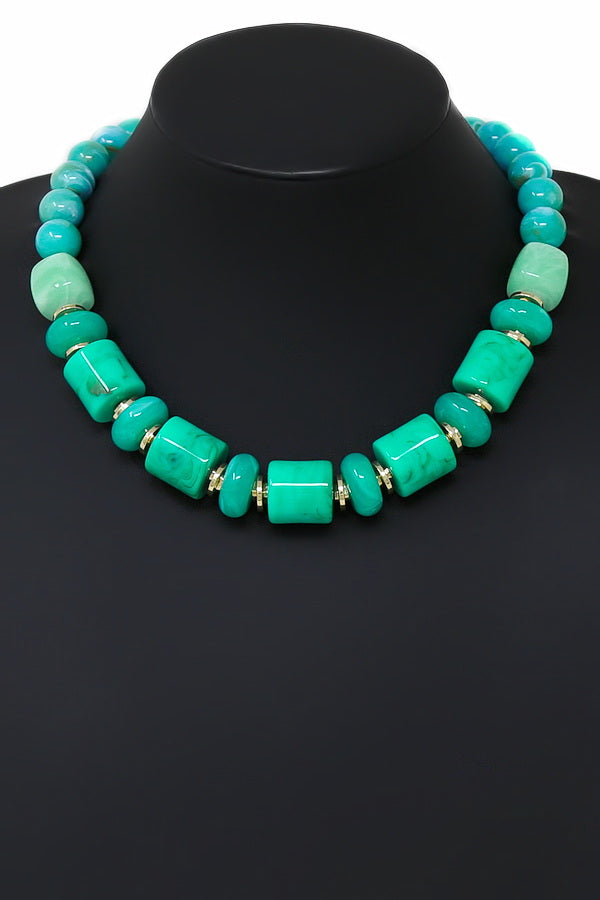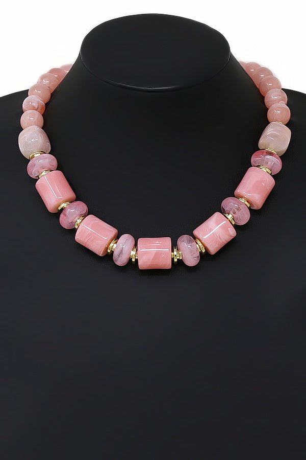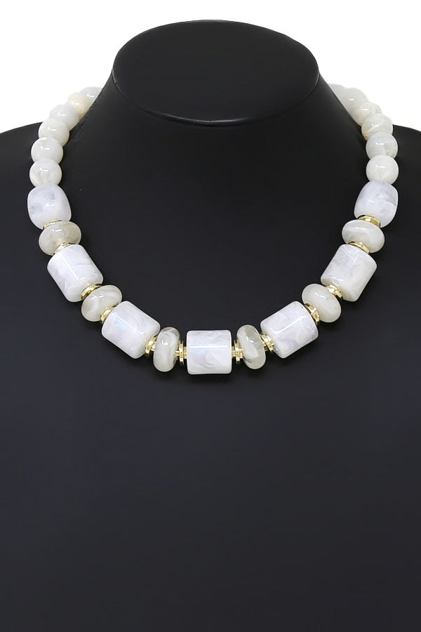 Marbled Resin Cylindrical Bead Short Necklace