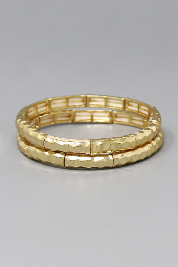Hammered Metal Stretch Bracelet Set