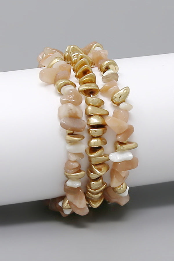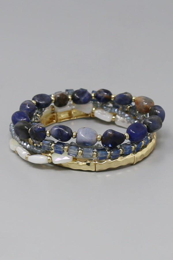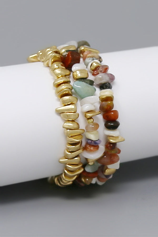 Natural Stone Station Beaded Stretch Bracelet Set