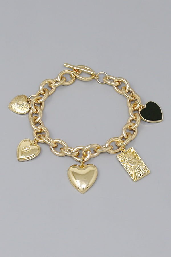 Heart Multi Charm Toggle Bracelet