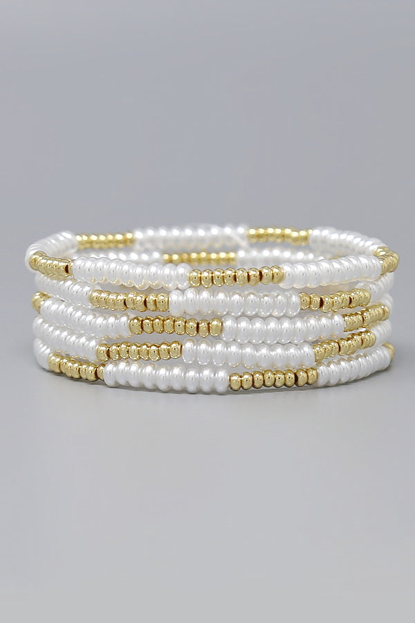 Pearl Beaded Stretch Bracelet Set