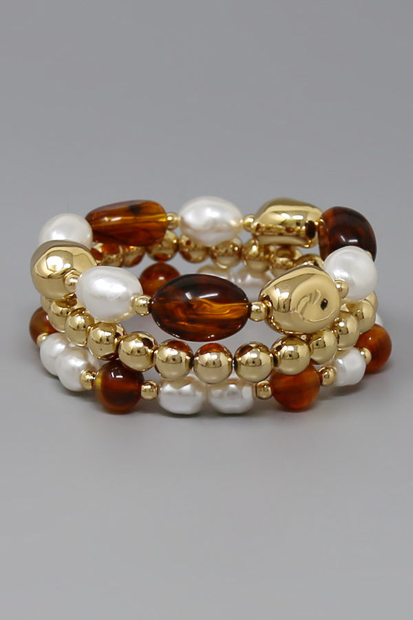 Pearl Station Beaded Stretch Bracelet Set