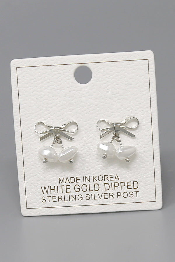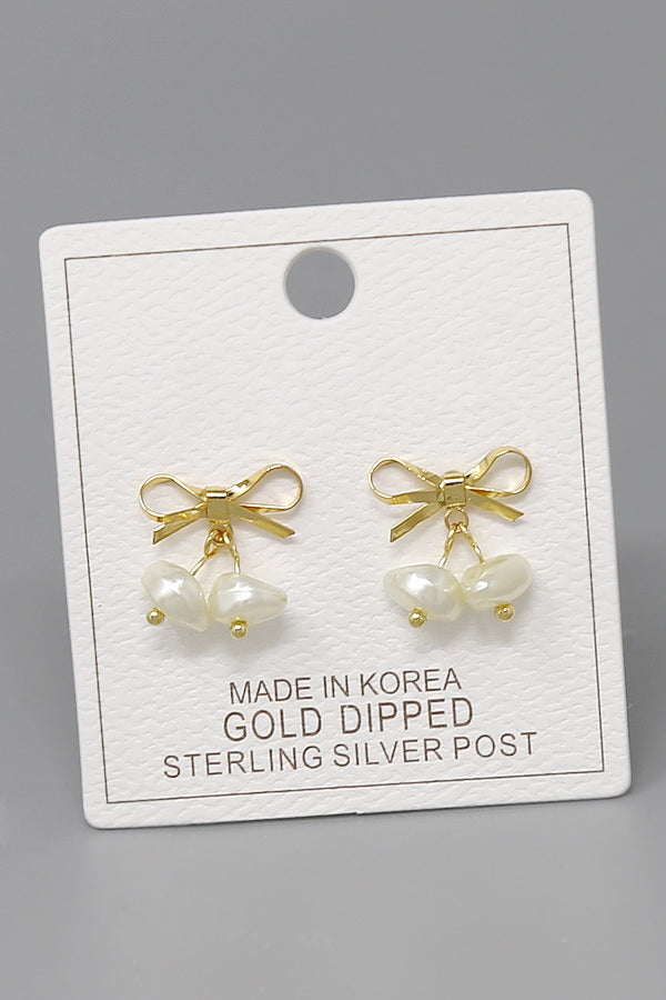 Bow Pearl Drop Gold Dipped Stud Earrings