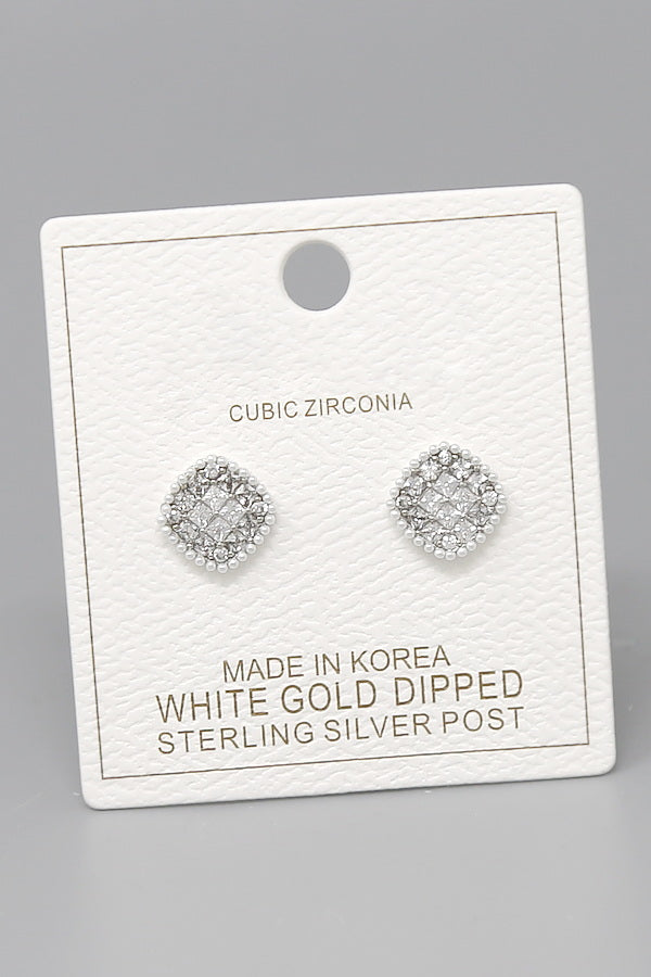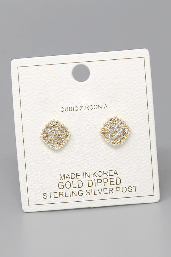 CZ Pave Gold Dipped Rhombus Stud Earrings