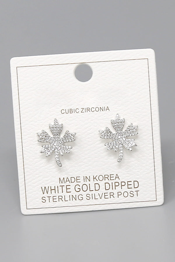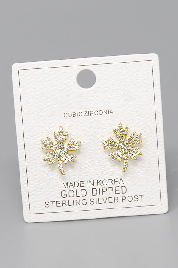 Maple Leaf CZ Pave Gold Dipped Stud Earrings