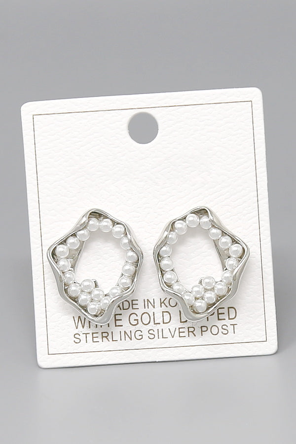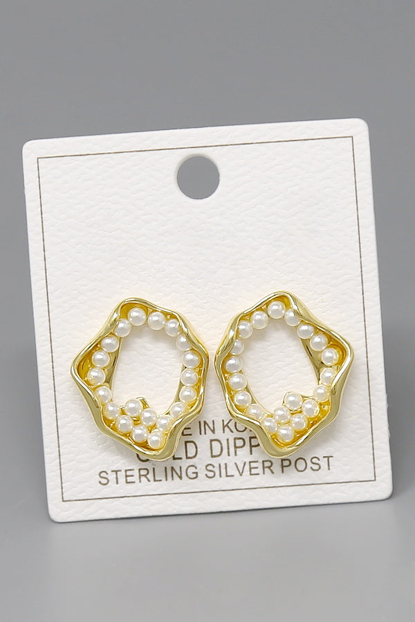 Pearl Embellished Organic Hoop Drop Earrings