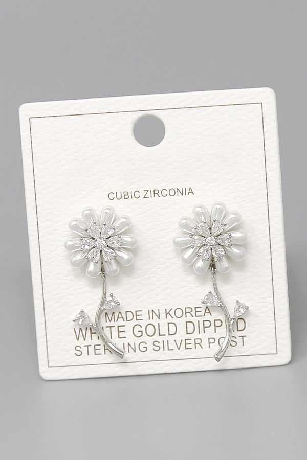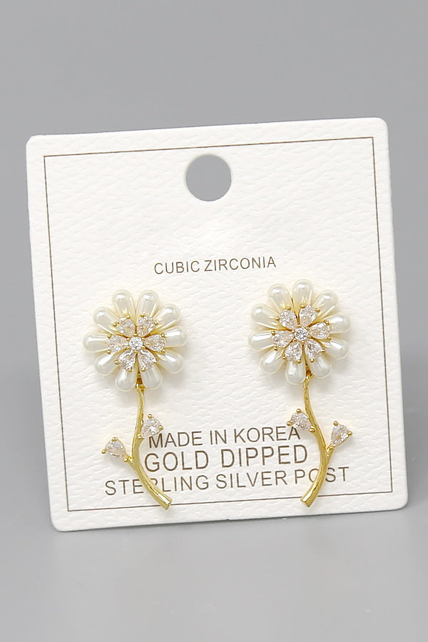 Pearl Flower CZ Detail Gold Dipped Dangle Earrings