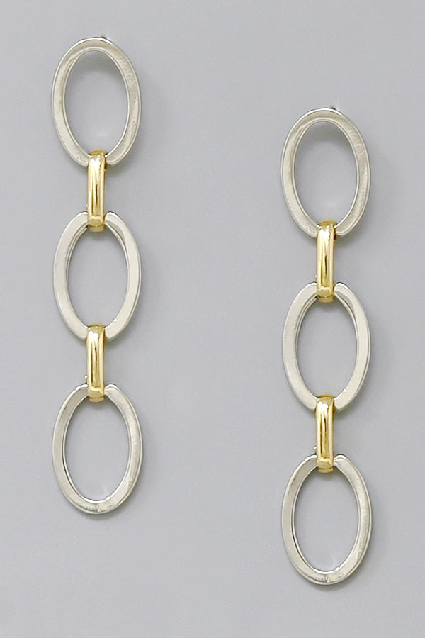 Triple Oval Hoop Two Tone Gold Dipped Drop Earrings