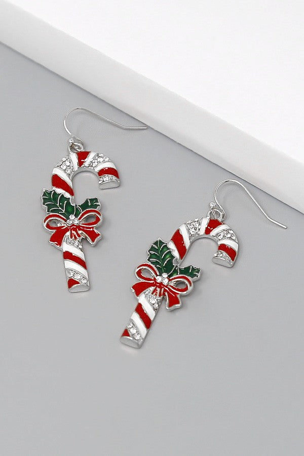 Christmas Candy Cane Enamel Earrings
