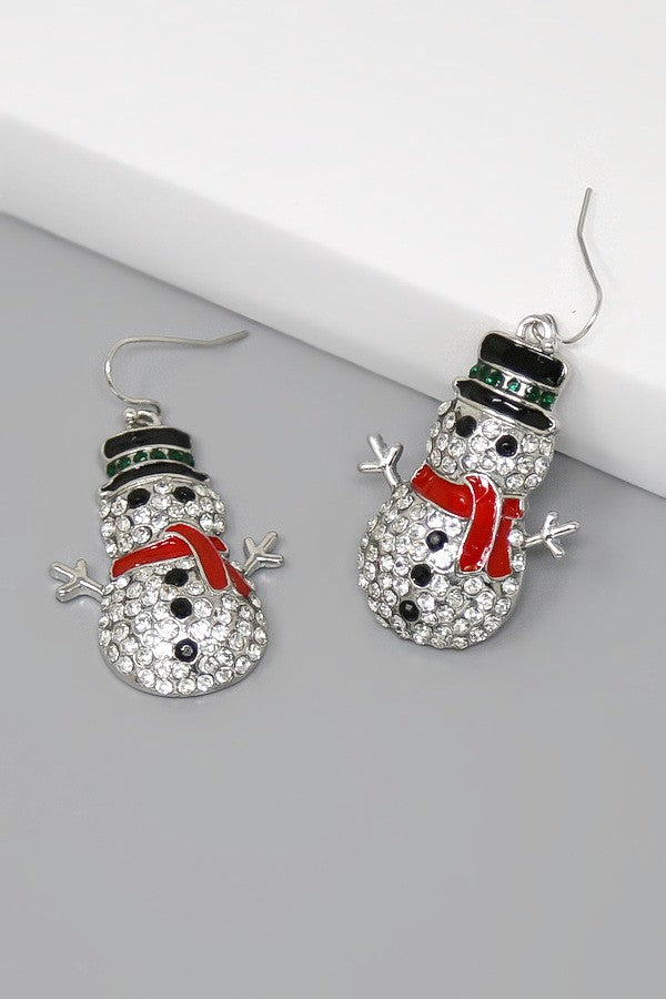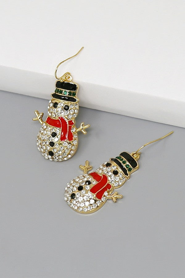 Christmas Snowman Glass Stone Pave Earrings