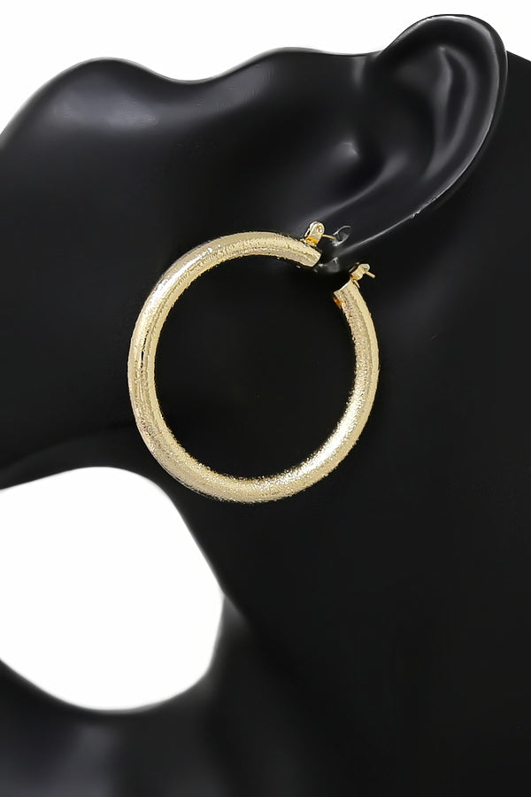 50 MM Sand Textured Gold Dipped Hoop Earrings