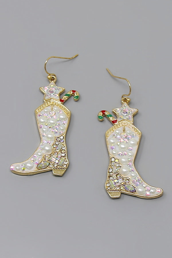 Christmas Cowboy Boot Dangle Earrings
