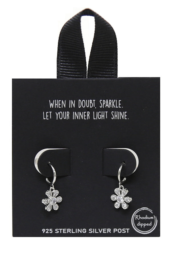 CZ Flower Charm Mini Hoop Earrings
