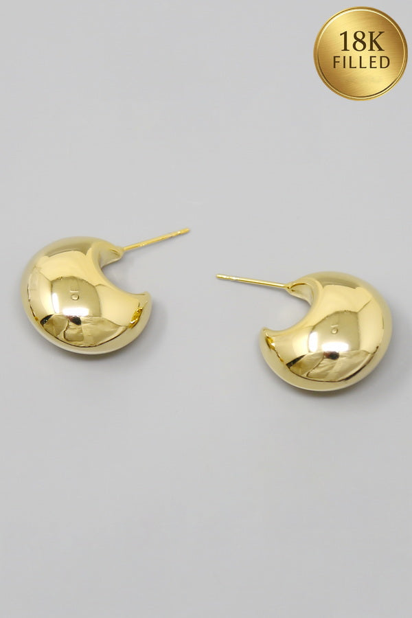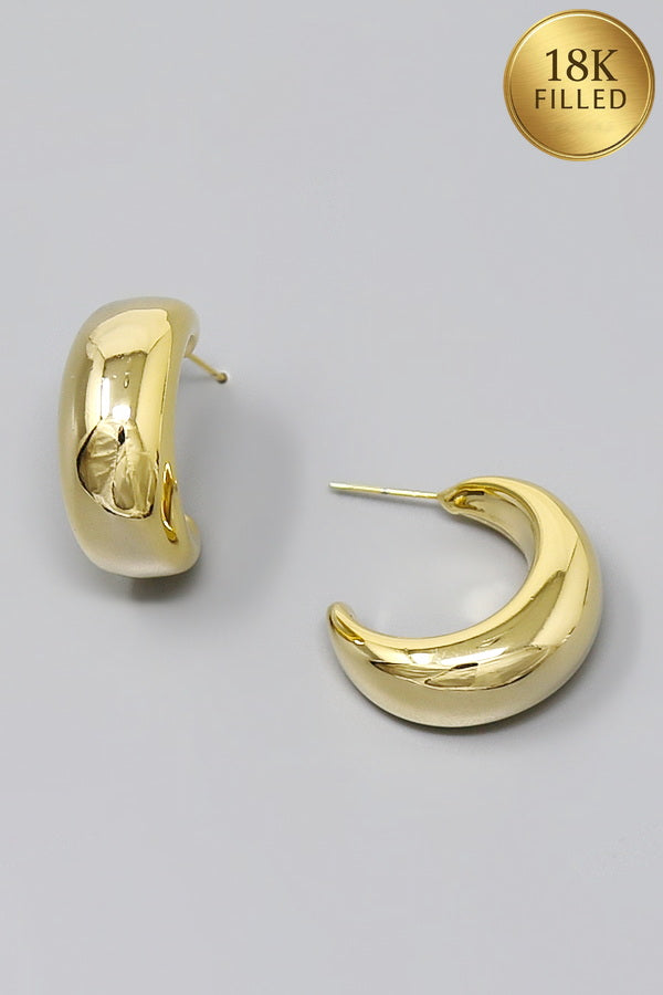 18K Gold Filled Puffed Crescent Metal Hoop Earrings