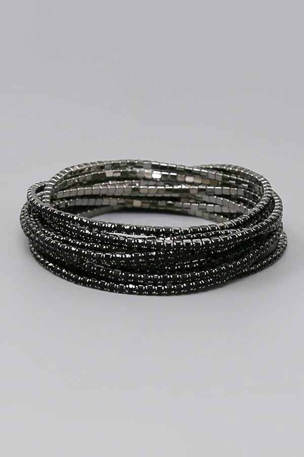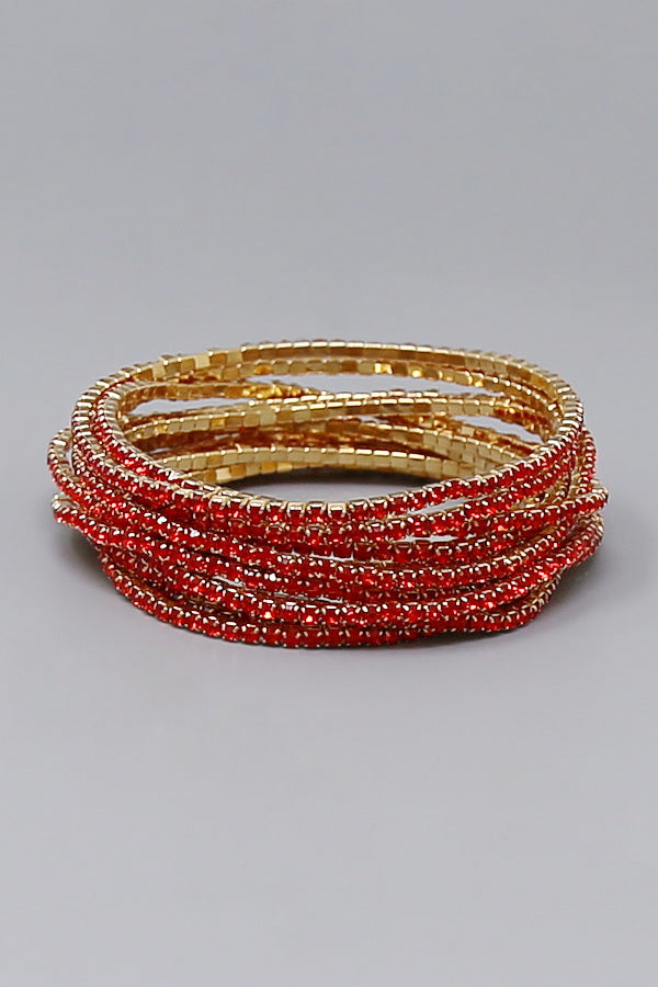 12 Line Rhinestone Pave Stretch Bracelet Set