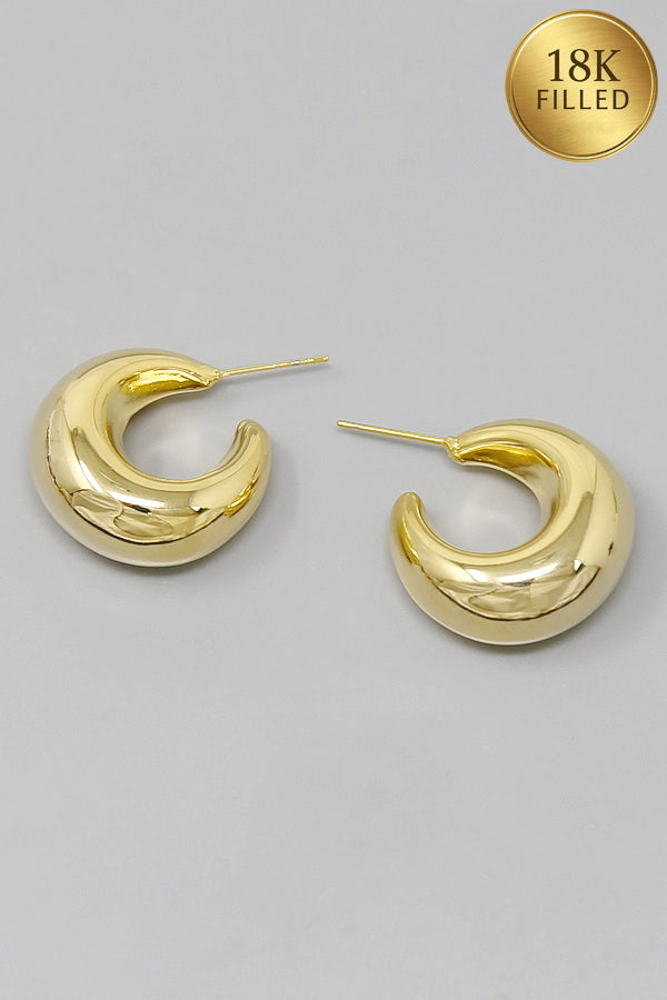 18K Gold Filled Puffed Crescent Metal Hoop Earrings