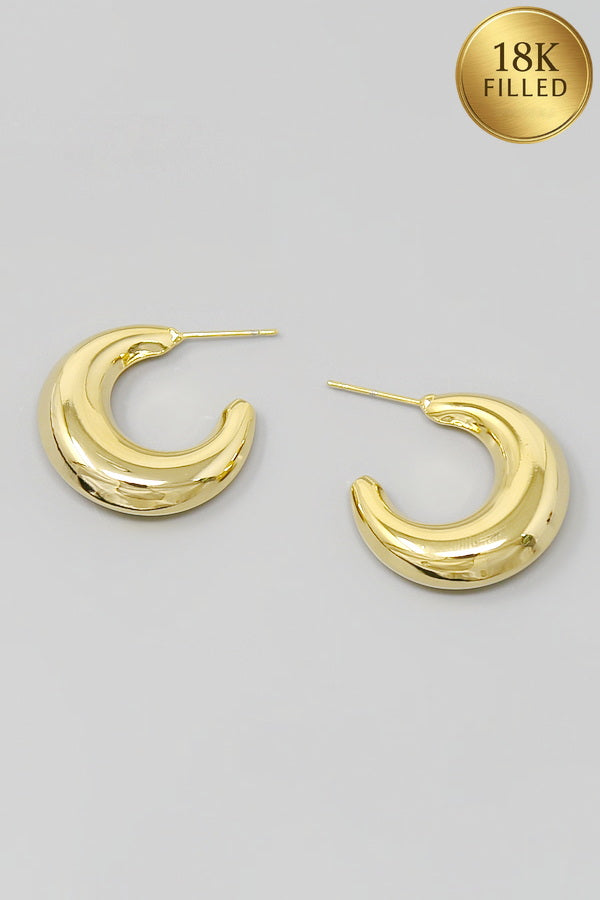 18K Gold Filled Puffed Crescent Metal Hoop Earrings