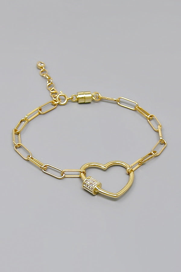 Carabiner Heart Charm Gold Dipped Magnetic Bracelet