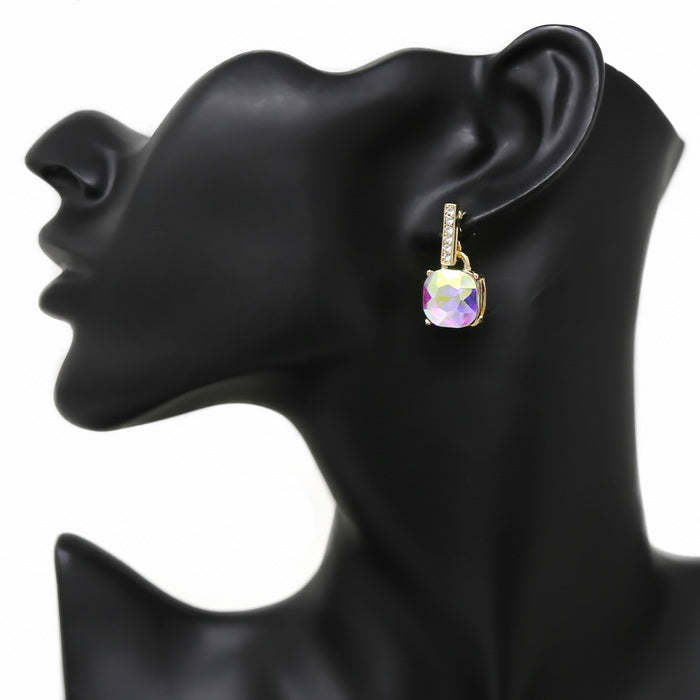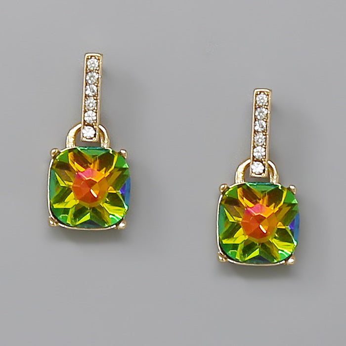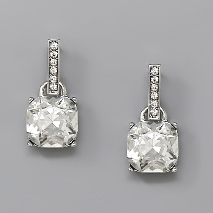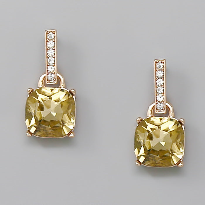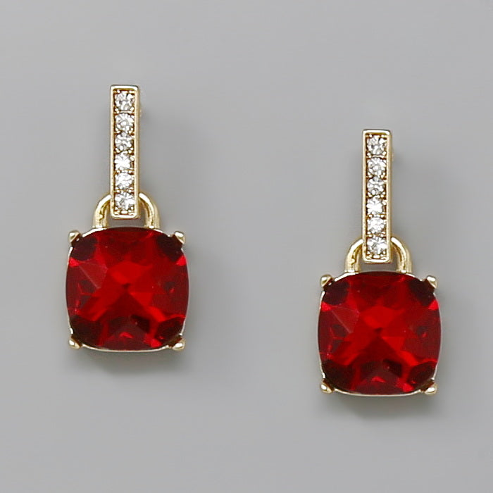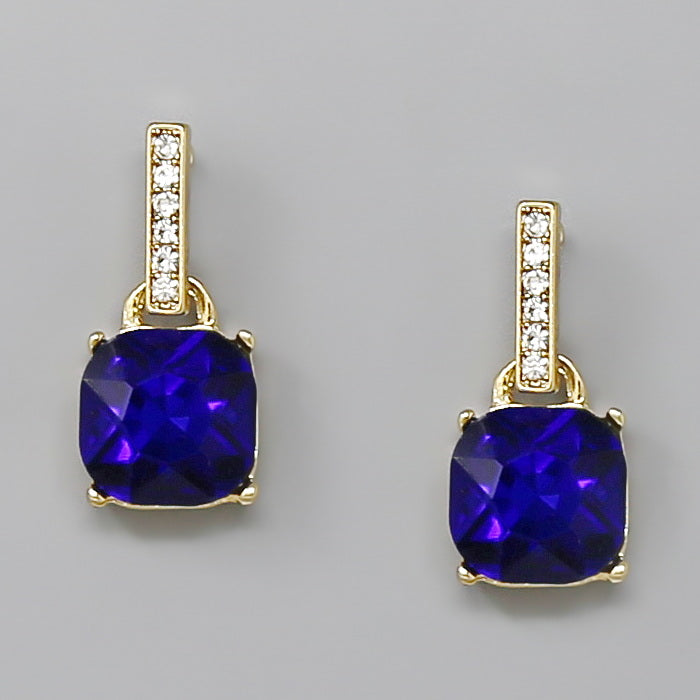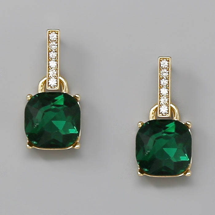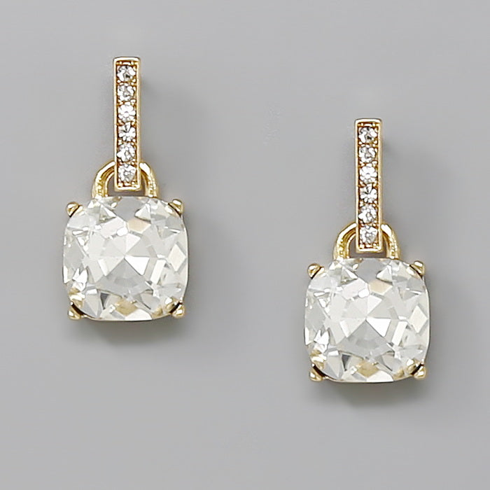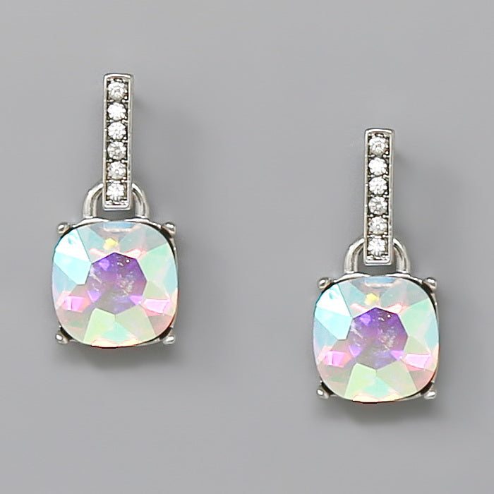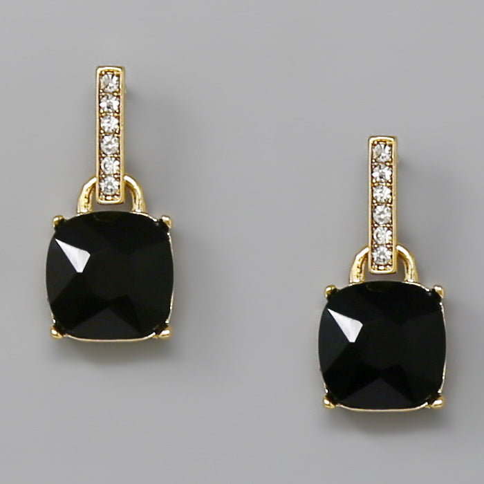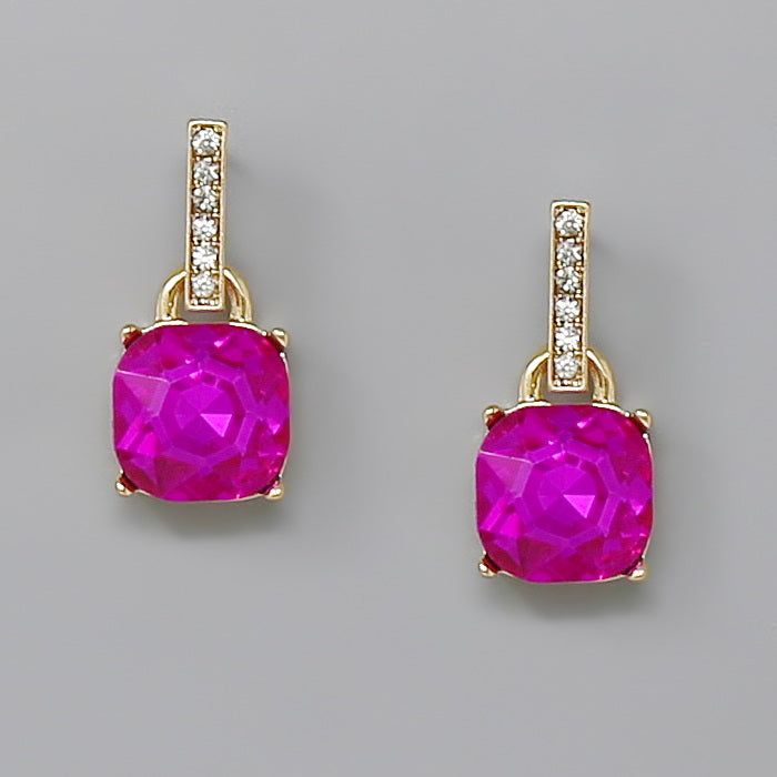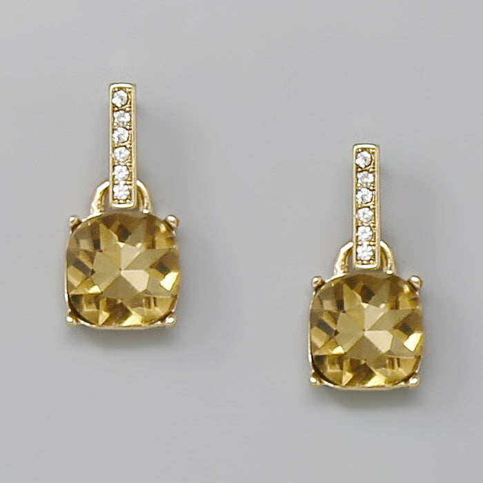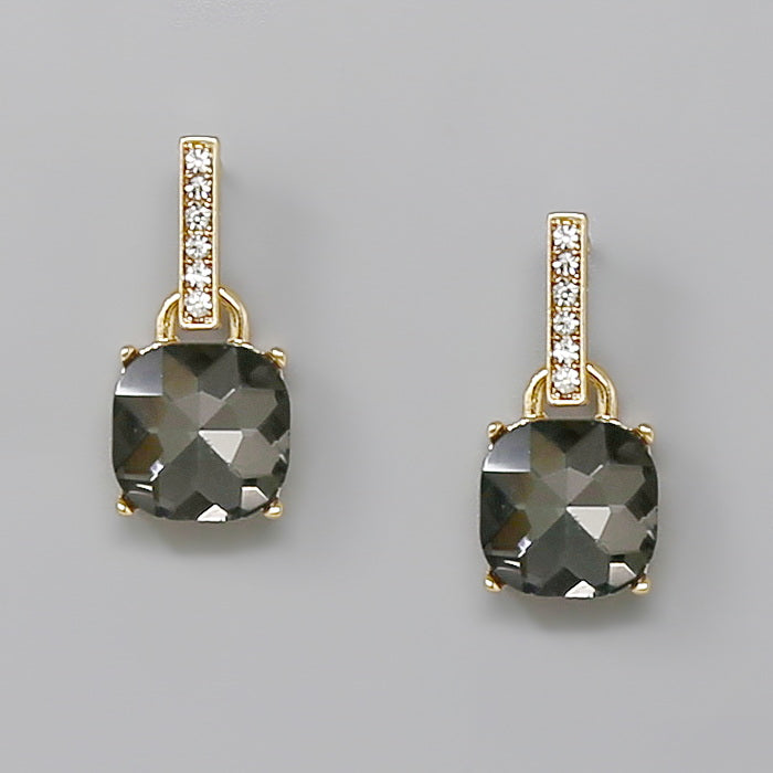 Glass Stone Pave Bar With Faceted Stone Drop Earrings