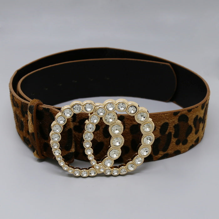 Glass Stone Pave Buckle Faux Fur Wide Belt