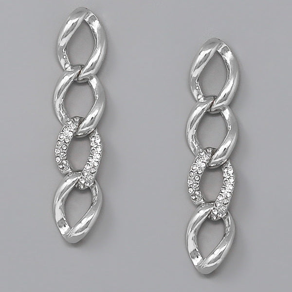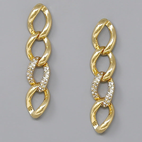Glass Stone Pave Chunky Chain Dangle Earrings