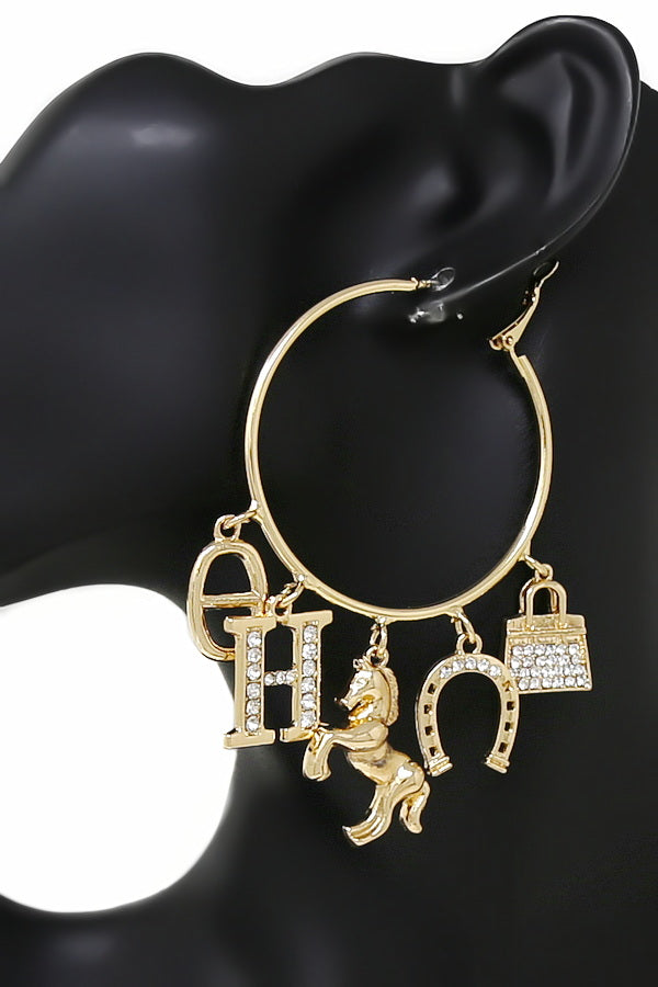 Horse Multi Charm Metal Hoop Earrings