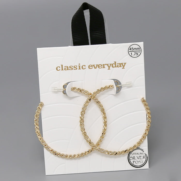 Hypoallergenic Braided Texture Metal Hoop Earrings