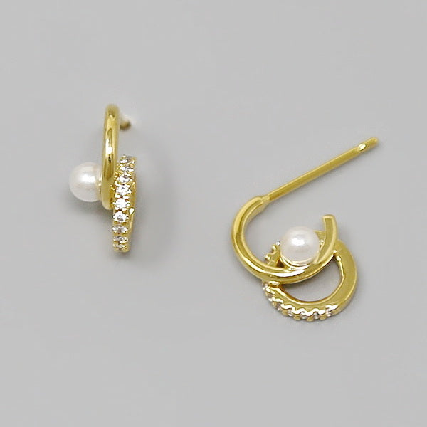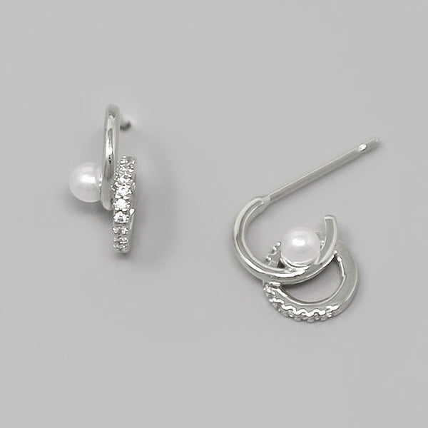 Pearl Detail CZ Pave Swirl Earrings