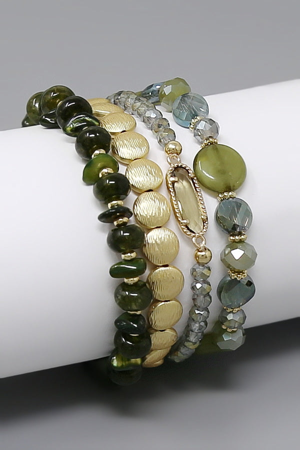 Semi Precious Stone & Glass Beaded Stretch Bracelet Set