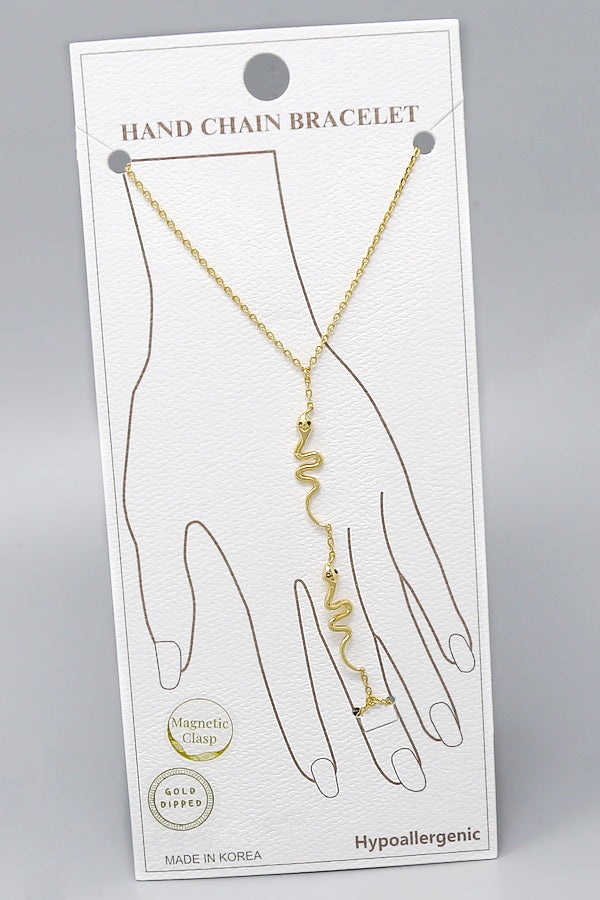 Snake Charm Gold Dipped Hand Chain Bracelet