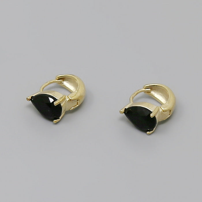Teardrop Glass Stone Detail Huggie Hoop Earrings