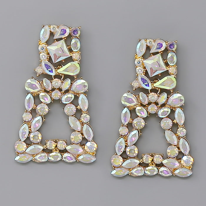 Arched Marquise Glass Stone Embellished Statement Earrings