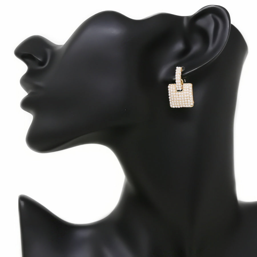 Pearl Charm Meatl Beaded Hoop Dangle Earrings