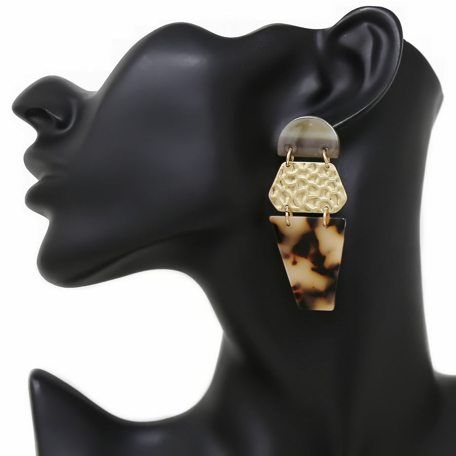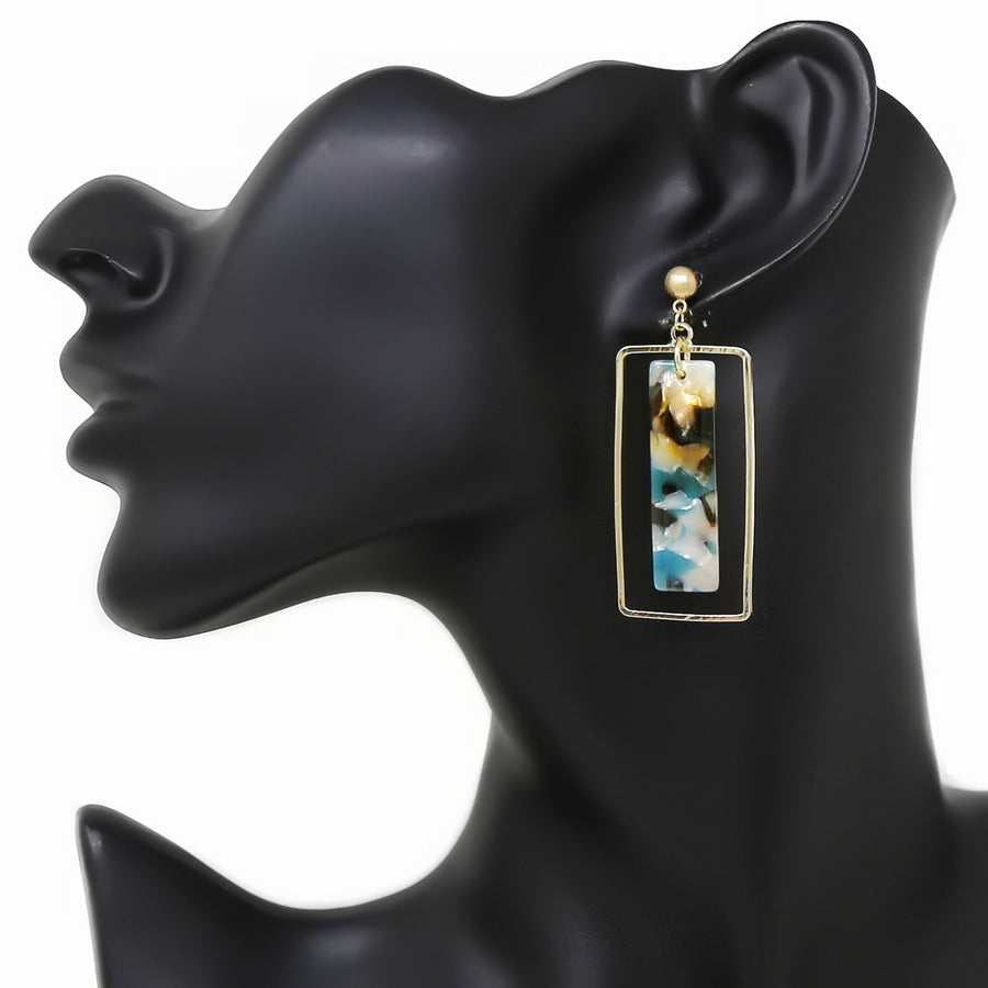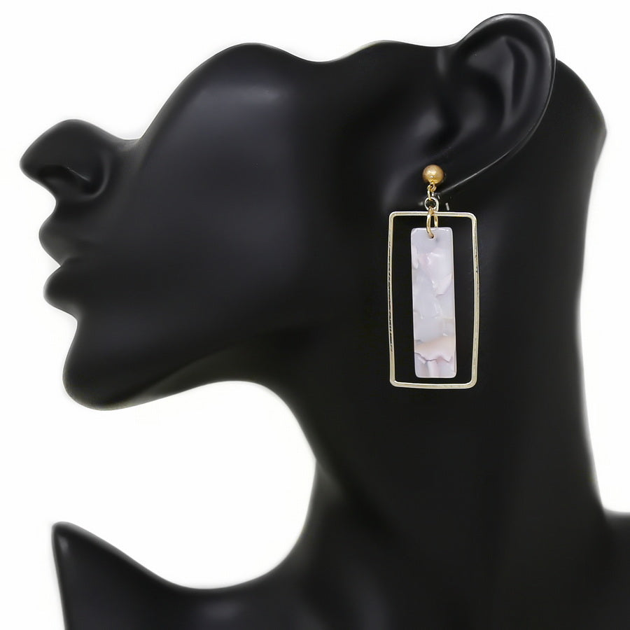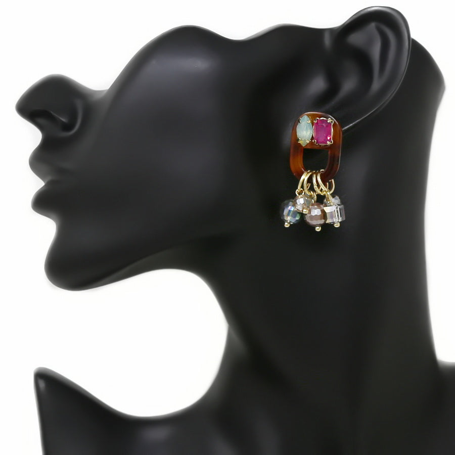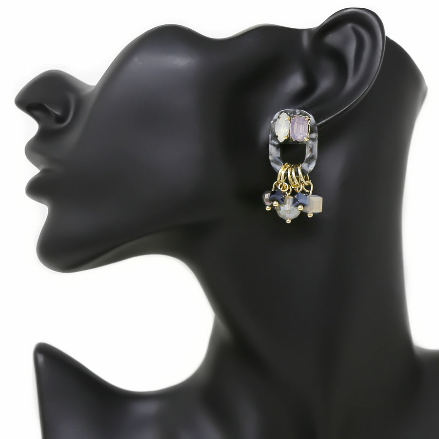 Glass Stone Pave Ball & Natural Stone Dangle Earrings