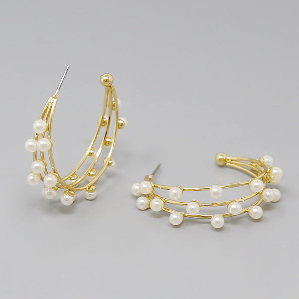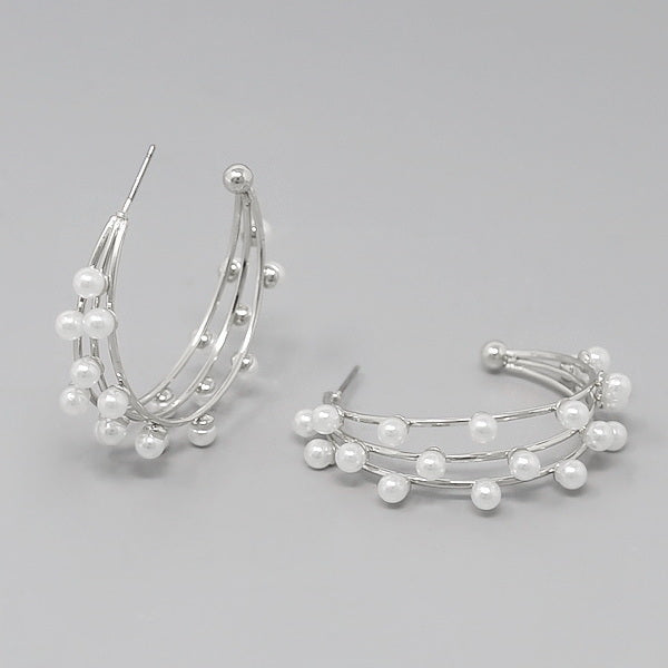 Pearl Tip CZ Stone Embellished Metal Bar Earrings