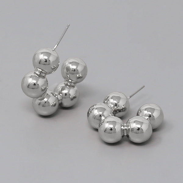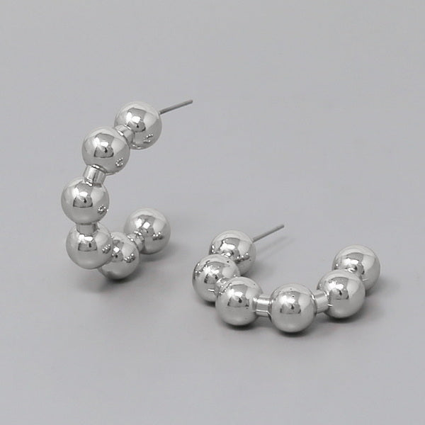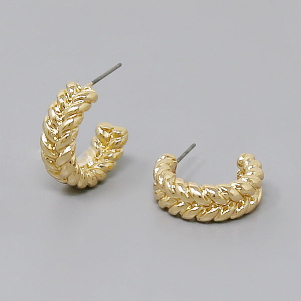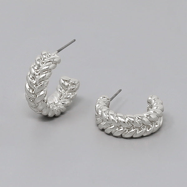 Pearl Detail Twisted Hoop Metal Stud Earrings