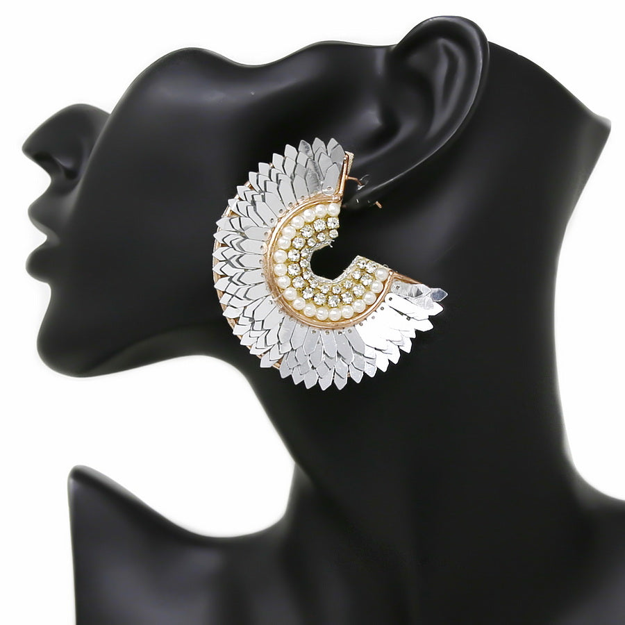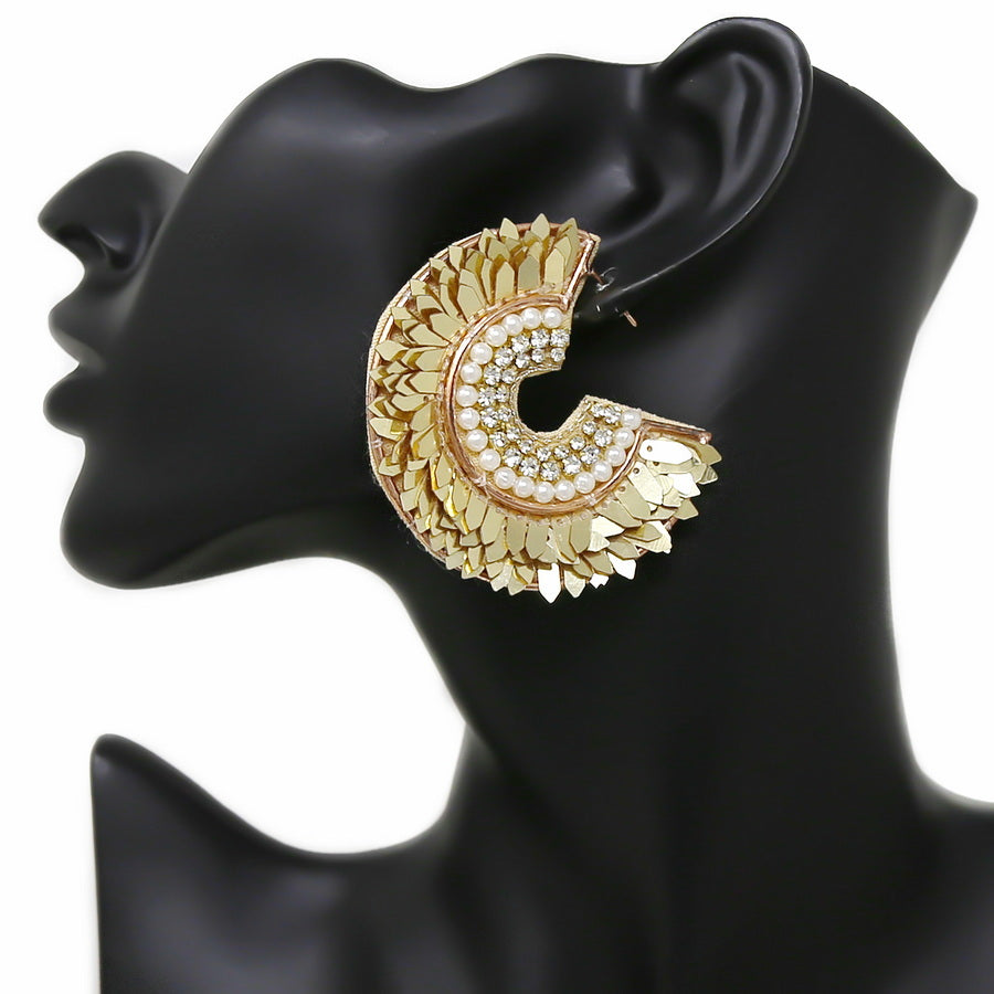 Rhinestone Embellished Metal Wire Hoop Earrings